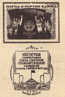 ちなみに雑誌の目次はドイツ語、ロシア語、英語の3か国語表記。 左は1977年発行の“市民と党は一つ”を表現したソ連の切手。下はコレクターのための特別消印。 これらのコレクター消印も様々な種類があり、メッセやスポーツの大会などに合わせて発行される切手と記念印はたいていセットになっていたようです。 この記念消印が、今見ると良い雰囲気。DDRのスタンプは独特の太く、木版のようなくっきりしたものが多いのですが、これもそうです。次には合わせてDDRの買い物用紙袋を御紹介したいと思います。 (下はDDRの切手のひとつ。工事現場モチーフだったのでピックアップしてみました。) ![]() |