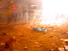 ![]() 大晦日のブランデンブルク門周辺。 地面はびっしり花火のカスが |
