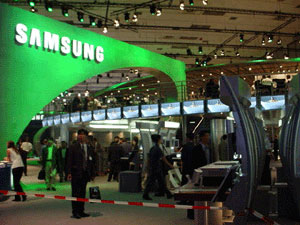 日本の新技術に対抗しよう!というのか、知名度をあげようと頑張っているのは韓国のSAMSUNG。旗や広告などに多大の協賛金を払い、どこのブースに行っても“サムソン”の文字が目に入って来ます。そして、このメッセのためだけに、サムソンの社長がわざわざ韓国からやってきて、毎日小さな演説みたいなものをしたり、1日1人にサムソン製のデジカメをプレゼントする等、とにかく今回の気合いの入れようはすごいものがありました!!