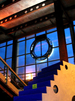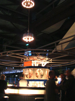 そして、今年、8月20日から11月9日まで、“フォルクス・パラスト(国民の宮殿)”という名前のイベントがこの建物内で行われる事になり、廃虚と化していたこのパラスト・デア・レパブリックは、にわかに、昔にもどったかのようなにぎわいを取り戻し、再び呼吸を始めた。 もちろん、これは取り壊しが決まって実際取りかかられるまでの、中間使用に過ぎないのだが、サシャ・ヴァルツの新作パフォーマンスの他、現代アートの展覧会、フィルム上映会等、毎日イベントが行われ、『この東独の象徴とも言える建物の可能性を新たに発見してもらえる機会ともなるだろう』(イベント企画者のコメント)。 昔のバーを生かして作られたバースペースは、イベントが有れば開いて、廃虚の中に、70年代の雰囲気を運んでくれる。ココに座ってちょっと一杯飲めば、過ぎた時代に思いは飛んでいく。東独、とはなんだったのか。何が、だめだったのか。 盛り上がる市民とアーティストに対し、落ち着かないのが、この建物の取り壊しをしたい、保守政党(CDU)の政治家達。もし、この建物が、長期に渡りカルチャー・スポットとして息を吹き返したら、取り壊し計画は無くなるのか?という私の疑問に対して、『否、でもやっぱり東独政治を代表する建物だから、あまり大きな顔をされていたら困るんじゃ無いの』と多くのドイツ人は言う。 取り壊し費用のメドも日にちも立たないまま、ほったらかしにしておくよりは、イベント、プロジェクトスペースの方が良い!というのが多くの市民の声ですが、さて、どうなることやら? 無くなってしまった国の残り香・・・その国を、今でこそ、政治的な理由で残して置きたく無いのだろうとは思うのですが、 しかし、決して再び作る事のできない、歴史的な香り。なんらかの形で保存してもらいたい、と切実に願いながら、夜空に浮き上がる角張った輪郭を後にしたのでした。 |