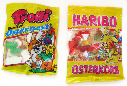 | ドイツで春の訪れとともに祝われる、イースター。3月21日以降の最初の満月の後の後の日曜日が、イースターの日曜日。 クリスマスと新年が終わると、チョコレートでできたウサギとともに、HARIBOのイースター限定シリーズがスーパーのお菓子コーナーに並び始めます。 今回、イースターのグミをチェックしながら気づいたのですが、 HARIBOのライバルである、グミ会社Katjesがイースターやクリスマスといったイベント限定のデザイングミ合戦に、まったく参加していないんですね。 ワールドカップの時だけは、女子サッカーチームのスポンサーをやっている関係で、ラクリッツ入りのサッカーグミを出していましたが →サッカーグミ イースター関係のものはまったく見当たりませんでした。 さて、HARIBO。最近、ちょっとだけ、新製品のデザインにネタ切れの匂いを感じます。 今年のイースターでは、かなり色々な種類が出ていて最初はびっくりしたのです。 ・・私が見つけただけでも、毎年みかける『Goldhaeschen(定番の熊グミをうさぎに変えたもの)』の他、 『Hasiland』『Osterkorb』『Ostrmix』『Osterspass』『Ostermini』『Osternest 』・・・。 ハリボさん頑張ってる!!と思ったのもつかのま。よくよく観察してみると、中身はあまり変わらなくてミックスを変えたものや、袋を大きくしただけのものだったり・・。 ちょっとがっかりもしましたが、ディティールへのこだわりはやっぱりハリボ。 他のブランドと比べると、その差はさらに明確になりました。 |