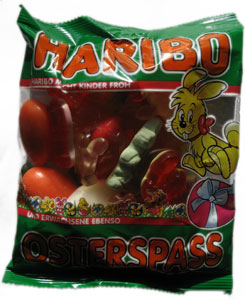 | HARIBO、Katjesに続くドイツのグミ会社Trolli。おもにグロ系(目玉のグミとか・・)駅の自動販売機売りでよくみかけますが、 Katjesほど『会社のコンセプト』を明確にうちだせておらず、色々デザインにこだわっているようでありいながら、HARIBOと比べると 真似っこ、バッタもの、感がぬぐえない、微妙な立ち位置のブランドです。 値段が、他の2社に比べて安価。袋を開けたとたん、フルーツ消しゴムのような香りが強烈に漂う、駄菓子っぽさ。 そして、何をつかっているのか、どのグミも、妙に、むにゅむにゅした歯ごたえをしています。 日本のグミは、ドイツのグミと比較して、総じて柔らかい感触。しかし、このTrolli社のものは柔らかいだけでなく、歯にくっつき、ねっとりねばねばです。 クリスマスグミ、のところでも、『バッタもん』と書いていますが、Trolliは、デザインという点において、HARIBOの真似が大好き。 イースターのグミも、パッケージ、内容ともに驚く程似ています。しかし、よーく見るとすっかり似ているようでさっぱり似ていないのに驚かされます。ある意味、『愛すべきまがいもの』なのです。 パッケージのモチーフは『卵が入った籠を背負ったうさぎとひよこ』で、ほぼ同じ。ちょろりとだした出っ歯や、うさぎの前髪と胸毛のあたりがしゃわしゃわした感じもよく似ています。 決定的な違いは、Trolliのはなんだか『かわいげが無い』ということでしょうか・・。 いや、ヒヨコはなかなか可愛いと思うんです。でも、うさぎ・・・眉毛は濃いわ、ヒゲはなぜか剃ってあって、剃りあとが青々しているわ、で、どうもおじさんぽい。籠の中の卵も、毒々しい模様に彩られています。 |