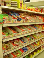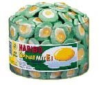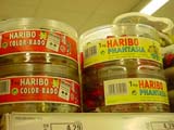| 様々な種類のあるドイツのグミ。ゼリー素材で成形が簡単ということからか、オリジナルな形のモノが色々見られます。また、イースターやクリスマスなどの時期になると季節限定の形(味ではありません。。。)が現れます。マシュマロ素材との組み合わせなど工夫をこらしたもの、プチプチした素材をまぶしたものなど、味以前に見て楽しむ要素がいっぱい!袋のパッケージでビジュアル部分を補えない、グラム売りのコーナーでは、個性を主張するモノが多く発見できます。 | ||||||||||||||||||