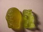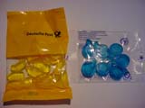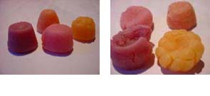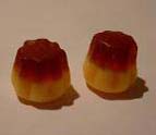 | ドイツのグミは全体的に日本のグミより固いです。 ゼラチン入りのモノと入っていないものでも固さが違います。 ここでは同じくらいの大きさの、ゼラチン入りのグミで比較してみました。 | |||