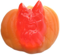 こっちは売れなかったのかなあ?ちなみに、紫色とオレンジ色の髑髏型とコウモリ型は、ミニサイズになって、ハッピー・ハリウィーン・ミニ、という小袋入りで売っていました。