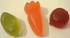 グミ自体は、野菜をかたどったということになっているようですが、にんじん以外は、曖昧な形。
