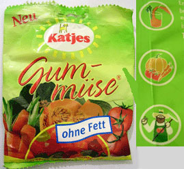 Katjesの新作2品。掲示板でも話題になった、Gum-mueseは、野菜たっぷりのパッケージ。