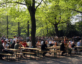 さて、ビアガーデン。“ドイツ”といえば、ソーセージにビールにじゃがいも、というのが一般的なイメージで、ドイツに来るとビアガーデンでビールを!と思っている人も多いと思いますが、実はベルリンではいわゆるビアガーデンというものはそれほどみかけません。 |