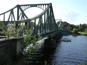 1950年代にはまだ、バスの行き来があったとか。 この橋はもともと、第二次世界大戦時に崩壊し、1949年に“統一の橋”として再開。 しかし、壁の建設が始まった1961年、閉鎖され、国民の直接の往来は禁止。 連合軍と外交官だけが通行を許可されることになりました。 橋と、川の回りにも鉄条網と壁が巡らされ、逃亡を試みた人達が逮捕されたり、射殺されたりということがやはり、この回りでも起こっていたのです。 この橋はそして、東と西のスパイが交換される場所としても有名だったそう。 橋の両側、西のスパイは東から、東のスパイは西側の入口から、向かい合って歩かせ、真中でちょうど交換(というか取り引き?)したとか。 スパイだけでなく、政治活動をして捕まった人等の交換もあったようです。何にしろ、西が欲しがる人間を渡す代わりに東の要求も通す、逆も、ということなのですね。 |