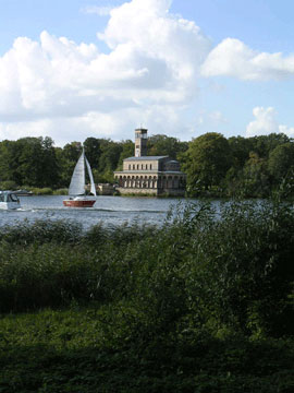 そういう話を聞くと、そんな気がしてくるから不思議です。 ベルリンの壁が崩壊した1日後の、1989年11月10日、この橋も通行が自由になったのでした。 当時は東側と西側半分半分で違う色が塗られていて、橋口さん曰く、“統一の橋”じゃなくて“分離の橋”てな様子だったようですが、今は、錆止めの渋い緑色一色に塗られた普通の橋。 静かな水をたたえた湖、その水は暖かい日でも冷たそうな、濃い色をしていました。 ここを必死で泳いで西に来たかった人が居るんだな、でも、失敗して撃たれたんだな、とぼんやり考えた午後でした。 |