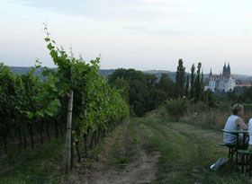 ![]() 19世紀マイセン陶器が作られていた アルブレヒト城が遠くに見える、 プリンスのワイン畑。 |