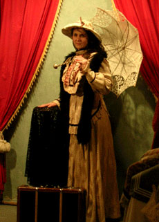 もうひとつ、この市でしか見かけた事のない出店が“写真館”です。 まるで19世紀にタイムトラベルして、まだ珍しかった写真館で記念写真を撮るかのような体験ができるこのお店。店内にはアンティークドレス、帽子等、歴史映画で使われるようなコスチュームが十数種類揃っており、お客は好きな衣装を選び、小道具(旅行鞄等)を添えてレトロなセピア色の写真におさまります。 私が見た時にはちょうど、カップルできた女の人の方がドレスにレースの日傘で着替えをする所。最初はジーンズにセーターで髪を後ろに束ねてスポーティな感じだった彼女は、髪を下ろしてドレス、毛皮のショールを身にまとうと顔つき、物腰まで変わってしまい、お店の人は連れの男の人に『見違えたでしょ!』と声をかけていました。お客の多くはひとりより、観光できたグループ等が全員で水夫と船長に扮装したり、家族で揃って中世の騎士とお姫さまになったり・・というパターンが多いそう。1人9ユーロ、それから後は1人増えるごとに2ユーロとむちゃくちゃに高値でもないですし、大人数で撮る方が経済的。ベルリン旅行の記念にパチリ!! さて、オペラ座の隣には、マジパントルテ、シュヴァルツ・ヴェルダ−等、ドイツっぽい濃厚なケーキの種類が他のカフェに比べ群を抜いている、オペルン・カフェーがあり、そのカフェのある通りにも、市の出店が広がっています。 |