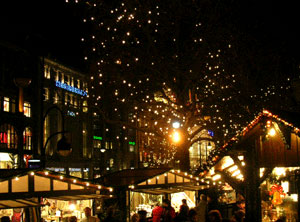 このクリスマス市の特徴は、ショッピングストリートにある店が出店を出しているので、