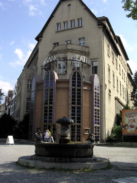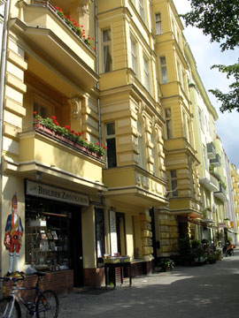 しかし安いといってもバカにならない値段だから、自然と行動半径が狭まってしまうのだ。 そんなわけで、大学卒業後はこの道を通る事はかなり稀になってしまったが、1日券を持っている時は、遠回りをしてちょっと通ってしまうこともある。 ハーデンベルク・シュトラーセの角にはマニファクトゥムという高級デザインプロダクトの店があるので、プレゼントとかを探している時は、ここをちょっと覗く。 高いので自分のモノはほとんど買った事が無いけれど、シンプルな陶器のコップを探してる時、コンスタンティン・グルチッチさんのお気に入り、というWalkuere の白いコップを教えてもらい、 ベルリンの小売店ではココでしか手に入らないそうなので、ココで買った。 そこからドライフルーツを沢山売っているお店を覗き、紙の店でレターセットやシンプルなノート、ファイル用の紙を探す。 しかし、なんと言ってもこの道を通る時に欠かさず寄るのが、Glasklarというガラスのお店。ルバーブジャムの項で ちらりと触れた、卸値に近い、格安でありとあらゆる透明なガラス製品が買える店。 デパートでガラス製品を買おうと思うと、なんだかデコレーションがついてたり、柄物だったり、どうも気に入るモノが無い! でも、この店ではフツーの、シンプルで食事の邪魔にならない食器がみつかる。高級品ではイェナグラス製品のバウハウスデザインのティーポットなんかもあるけれど、大体がレストラン等で使われているようなシンプルで安価なもの。 案外こういうのって、デパートとかでは見つからないのでこの店があるのはホント嬉しいのだ。 何をするでもなく、ぶらぶら、緑の並木と、佇まいの良いアルトバウが並ぶこの道を歩くのは楽しい。道沿いには小さなホテルが沢山あり、 昼時ともなればテラスは一杯。白髪のカップルが多いようだ。 パン屋の外に出されたテーブルでは、近くの工事現場で働いている人がオーバーオール姿のままおしゃべりに興じている。 かと思えば、この近所に住んでいるのだろうと思われるオシャレなスーツを着こなし、パリッと化粧したマダムがカツカツ駅まで歩いている。 こういう人はあまりミッテやプレンツラウアーベルクでは見かけない。やっぱり西側なのだ。 道の始まりにあるルネッサンス・テアターはステンドグラスが綺麗な古い劇場。夜になると公演のために来る人達が車で乗り付ける。 冬は毛皮のマダムをエスコートするスーツ姿の男性。うーんこれも西側。 西といってももちろん色々あるんだけれど、西っぽい、とまさに思えるのはこんな街角なのだ。 |