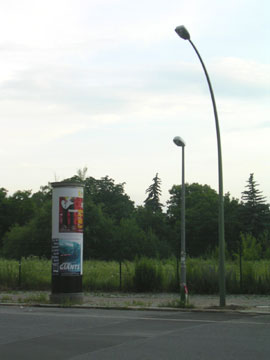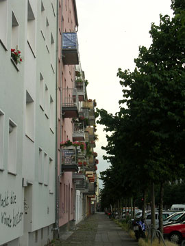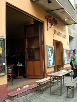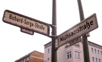 | リヒャルト=ゾルゲ・シュトラーセはフリードリッヒスハインにある。 カール・マルクス・アレ−をどんどん東に向かって、 丸屋根の塔が目印のフランクフルター・トア−が見え、映画館コスモスの所で左に折れる。 映画館コスモスは最近閉館し、ベルリン郊外で巨大なディスコ、"ザ・ニュー・ワールド"を経営する人に買取られてしまったそうだ。 ザ・ニュー・ワールドとはまたしかし、ベタな名前・・。 有り難い事に、彼はこの映画館をディスコ、ザ・ニュー・ワールドにするつもりはなく、マルチ・カルチャー・スペースにしたいんだそう。 うーん、典型的ベルリン、空きスペースの使い方だ。 このコスモス、60年代初め、3400席もある巨大な映画館として始まり、 1996年には、ベルリンでも初のマルチプレックス映画館として鳴り物入りで再スタートして注目されていたのだが・・。 リヒャルト=ゾルゲ・シュトラーセにある、小さな、早稲田ACTミニシアターを思い出させるような映画館、 リヒトシュピーレ(下右写真)は、 なんと創業1906年の映画館で、1961年まで頑張って営業を続けてきたのだけれど、 コスモスにとても太刀打ちできなくて営業を辞めざるをえなかったそうだ。 この映画館は1994年、映画好きの人達が集まって再び営業を開始している。 毎週のように日本映画をプログラムに入れている、要チェックの映画館! 少ない座席と言い、プログラムの練れた感じと言い、まさにミニシアターを思い出させる。 カール・マルクス・アレ−には 旧東独映画館インターナショナルもあるし、 アレクサンダープラッツにはシネマックスだったか、ハリウッド映画を良くやってる大きな新しい映画館もある。 ちょっと行ったと所には、最近やはり閉館を余儀無くされた、バビロン。ベルリンには映画館が多すぎる、とはよく聞くが、98年から27軒もの伝統ある映画館が潰れたそうだ。 小さな良いプログラムを地道に続けている映画館が無くなってしまうのはとても残念。 だから、このリヒャルト=ゾルゲ・シュトラーセにあるリヒトシュピーレには頑張って欲しいので、暇があったら見に行こうと思っている。 さて、この通りは大部分は住宅街、一部は墓地で、後はなんだか廃虚みたいな工場跡地がある。 その住宅街の一角に、小さなギャラリーがある。 RS21は、ペーターという人がが自分の家の一部をギャラリーとして使っているギャラリーで(昔そう聞いたけど今も住んでいるのかな?)、 ベルリン在の日本の人が展覧会をしたり、イベントをしたりしているので、たまに、それを見に寄らせてもらう。 先日は知人の展示のオープニングパーティがあり、そこでは焼肉を出して大盛り上がりだった。 スマデリという、可愛らしい、日本食材店兼軽食レストランみたいなお店がフリードリッヒスハイン、 ボックスハーゲナー・プラッツの近くにあるのだが、 その店主?のユミさんという人が焼肉を出していたのだ。 彼女はデュッセルドルフの芸術アカデミー出身で自分も絵を描いていて、 確か、日本生まれの第2世代韓国人と聞いたことがある。 私も単純なので、韓国の人が作る焼肉→美味と思って楽しみにして出かけた。 たっぷりタレを染み込ませてジュージュー焼かれている焼肉の香ばしい香りと、夏のちょっと湿った空気が混じって、道中に溢れ、 オープニングパーティの雰囲気を盛り上げていた。 この、リヒャルト=ゾルゲ・シュトラーセは、住宅街の真中にこんなギャラリー、映画館がぽっと現れる不思議な通り。 街路樹が夏は生い茂って、いい感じだけれど、上を見てのんびり歩いてはいけない。ベルリン名物、道のど真ん中に鎮座する犬糞に遭遇する危険性大だから。 余談だが、散歩の途中、この道と交叉するミューザム・シュトラーセというのを発見した。 リヒャルト=ゾルゲというのは、ソ連防諜機関の偵察要員で、 第二次世界大戦終戦間際に亡くなった人だそうだが、 彼の名字、ゾルゲには『心配、懸念』等の意味がある。ミューザム、は『骨の折れる、困難な』の意。 どちらも人の名前だが、『心配』と『困難』の交差点というのはなかなか面白いなあと思った。 追記:リヒャルト・ゾルゲについて(2005/7/22) ゾルゲ事件・・日本政府の機密をソ連に伝えていた疑いで1941年ドイツ人新聞記者でソ連赤軍諜報員リヒャルト=ゾルゲと尾崎秀実(ほつみ)らが逮捕された事件。 ・・まったく知りませんでした! 2003年、本木雅広主演(尾崎秀実役)で映画化もされた。 ちなみにリヒャルト・ゾルゲ役はイアン・グレンという役者さん。 興味ある方は映画の公式HP『スパイ・ゾルゲ』を御覧あれ。 ベルリンでの撮影も行ったよう。 ゾルゲは、戦争をなんとか回避しようという目的で、日本の情報をソ連に送っていたという。 ソ連時代に建てられたという彼の銅像は今でもあるのだろうか? |