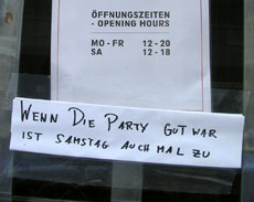 (ちなみに、ゲバ棒と言う言葉は聞いた事があったが、これがゲヴァルトというドイツ語と関係があると知ったのもドイツに来てからだった・・) この、ローザ・ルクセンブルク・プラッツ駅は改装され、今ではまったく無味乾燥の普通の駅になってしまっているのが残念。 今年、反戦デモがあった時、ローザ・ルクセンブルクと、カール・リープクネヒトの名がかかげられていた。 さて、この人の名前がついたこの通りは、特に、反戦や社会主義の香りは感じられない。 アレクサンダープラッツのすぐ手前にある道は、電車の線路沿いから、フォルクスビューネ劇場のある辺りまで続く。 この道は、特にこの道にある何かを目指して通るということは余り無い。 今夏、Raumerstrasseにある、お気に入りのセレクトショップが時期限定でこの道に支店を出したので、そこに行ったが・・。 後は、ベルリン映画祭の時、よくバビロン・ミッテという映画館に行って、映画を見た後、映画館の隣にあるカフェで一服した。 家からアレクサンダープラッツ駅近くのアジア食材店に行く時には、よく通る道なのだ。 さピカピカのガラス張りのアディダスショップを過ぎ、アメリカナイズドされたスープ屋の角を曲がる。 ローザ・ルクセンブルク通りは、現在発展途上の道で、新しいピカピカした安っぽいショップがあるかと思うと、古びた八百屋があって、そのナナメ前には、昔肉屋だったらしい場所を居抜きで使った品揃えの良いレコード屋があったりする。 かと思うと、真っ白に改装された建物が大工事を進めていたり、古びた感じの良いレンガ作りの建物の地階にネオンを光らせたエロティックショップがあったりする。 でも、こんな風にショップが入り始めたのもついここ1年くらいのこと。それまでは、駐車場と、古い居酒屋とか、ほこりをかぶった電化製品店があるくらいだった。 そういえば、入った事はないけれど、ワインのお店もある。Nadiffみたいな、文学書店とカフェが同居しているお店もあったが、最近立ち寄ったら閉まっていた。 ファインコストラーデンと呼ばれる、高級食材(高級じゃなくても良いけど、イタリアのエスプレッソとか、フランスのジャムとか、スペイン製のハムとか、そういうものが並んでいる) 店が新しくできているのをみかけた。へえ、こんなところにねえ、と思う。 ミッテの、ハーケッシャーマルクト駅周辺が大体開発が終わって、地価があがりまくり、ヒューゴ・ボスの店やら、スターバックスやらの大きなブランド?に占領されてしまったから、 そのさらに回りの、いままではただの小道でしか無かった所にじわじわとお店とかが広がって来ているのだ。 ショップはもう充分あるので、映画館とか、劇場とかがちゃんと援助されて、存続できると良いなあ、と思う。 バビロン・ミッテ映画館は、一時期、廃館の危機にさらされていた。(最近見たらちゃんと営業していた) フォルクス・ビューネも、独自のスタイルで演劇やらライブやらを行っているベルリンらしい劇場。頑張って欲しい。 ステキな、洒落た店なんか何にも無かった頃は、閑散としている街が淋しいような気もしたものだが、 今、こうやって変に開発(?)が進むと、嬉しいような反面、それはそれで、なんだかしっくり来ない気もする。 未完成で変わりゆく街の中に身を置いていると、常にこういう気分を味わうものなのかもしれない。 |