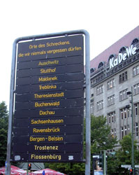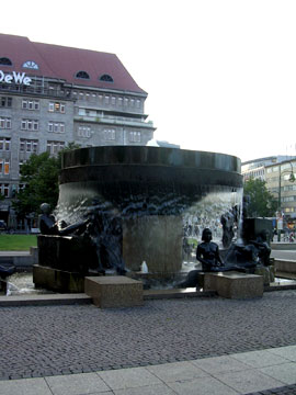 多分この駅舎の雰囲気に合わせるために復刻したものや、古っぽくしたのだろう。 キヨスクやチケット自販機も妙に馴染んでいるのが面白い。 駅を出て、地上に出ると、駅のぐるりはTauentzienstrasseと 駅を挟んで全部ヴィッテンベルクプラッツ、広場となっている。 ドイツは芋天国?というコンテンツでも書いたが、この広場には何故かソーセージ&ポテトのスタンドが3つも立っているし、 この広場で火曜日、金曜日に行われている市場では、種々のジャガ芋を並べる店もでる。どうもジャガ芋に縁がある広場だなあと思ったり。 広場が、駅を挟んで、噴水、そしてソーセージスタンドと対称になってるように見えるのも面白い。 噴水の周りに並んだベンチには、昼間から何をするでもなく、おじさんやおばちゃんが1人で座っている。 たまに2人とかで座っている人もいるけれど、おしゃべりが盛上がっている様子でも無い。 その背中を見ながら、シティバンクのガラス戸を押して、中に入る。この広場を通るのは、KDWに買い物に来て、ついでにシティバンクに寄りたいとか、 もしくは、すぐ近くにあるアジア食材店、VIN-LOI に買い物に来た時だ。 VIN-LOIには、レンコンとか、苦瓜とかのアジア野菜があったりして、近所の店より、品揃えが多いので、わざわざこっちまで買いに来る。 たまにしか来ないので、来ると冷凍食品から野菜から、瓶詰めから、お菓子、食器まで買い込んでしまう。この店は現金のみなので、入る前に銀行に寄って、資金確保。 何年か前には、この広場にビオラーデン(ナチュラルハウスみたいな有機栽培の食材やらコスメなんかを置いてある店)があって、 この店の横で美味しい軽食を食べられたので、ここでお茶したり、御飯を食べたりもしたが、最近はその店もレストランになってしまって、ちょっと寄る感じではなくなってしまった。 市が立っている日なら、ちょっと覗いてつまめるモノを買ったりもする。何も買わないでも取りあえず通ってぶらぶら一周。 天気さえ良ければそぞろ歩きも楽しいのだが、夜は買い物が終われば、この広場周辺ではあまりとどまらない。 雑誌で、新しい寿司の店ができたと言う話を読んで、行ってみたこともあるのだが、残念ながら、特に美味しくなかった。 というわけで、この広場をうろうろするのは、市が立つ時だけとなった。 買い物に来た時は、広場はつっきるだけ。頭の中で買い物リストを復唱し、店から出て来たらたいてい袋に一杯荷物を持ってよろよろ。駅に直行だ。 沢山の人がこの広場をせかせか通り過ぎる。観光客がKDWを指差しながらゆっくり進む。おばちゃん達はベンチに座る。 なんだか人が生きている、という存在を感じさせない広場だ。通り過ぎるだけの場所。 良く知っているのに、知らない場所だ。 好きな広場なんだけれどね。 |