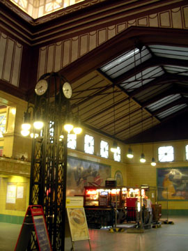無事リノベーションをすませた古い駅舎はモザイクタイル、木の扉、時計塔、区切られた窓から射し込む光・・昔にタイムスリップしてしまったかのような感覚を受ける。