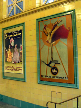 壁に残っているポスターは、ルフトハンザ、オペル、そして、この駅のすぐ側に立っている豪華デパート、KDW等のもの。